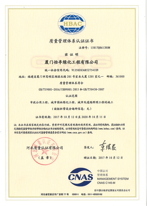 質量管理體系認證證書